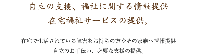 | FAX | 0835-25-2864 | 事業内容 | ・在宅福祉サービスの利用援助 ・福祉に関する情報提供 ・社会生活力を高める支援 ・ピアカウンセリング ・専門機関への紹介 ・その他生活全般に関する支援 |